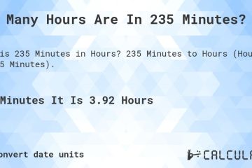 Continue Reading235 minutes is equivalent to 3 hours and 55 minutes when converted into hours. Understanding how to convert minutes to hours is essential for managing time effectively. Knowing the precise conversion can aid in scheduling tasks efficiently throughout the day. Let’s delve deeper into the process of calculating hours from minutes to streamline your daily […]
